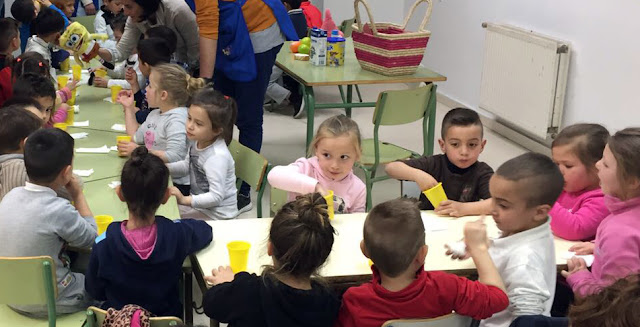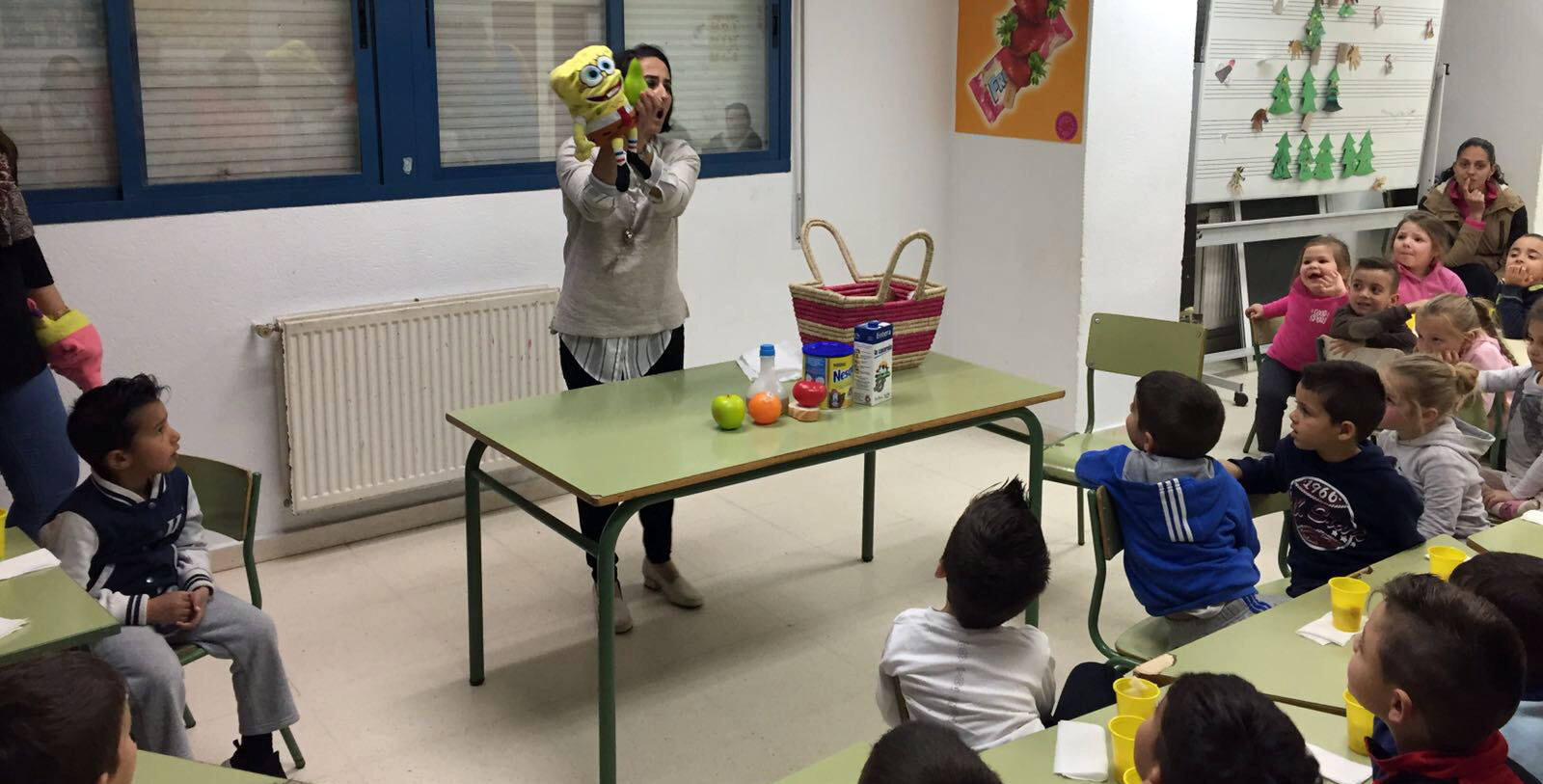 Bob Esponja y Patricio desayunan sano, en forma de teatro de marionetas estuvieron en las aulas de educación infantil varias mañanas.