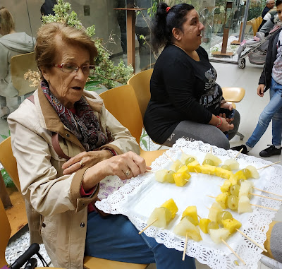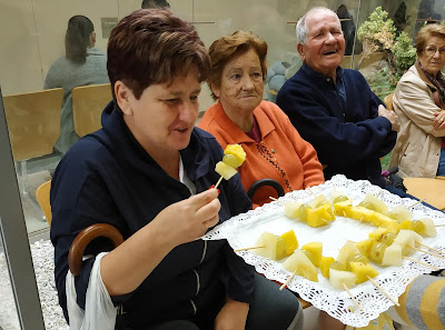 Y lo celebramos con fruta, preparada bonita, para despertar las "ganas", regalada con sonrisas, para alegrar la mañana.