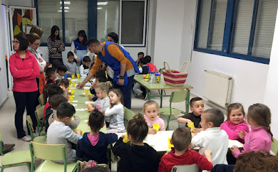 Cada actividad termina con un desayuno en las aulas, un cóctel de frutas, unas risas y muchas ganas de repetir en casa.