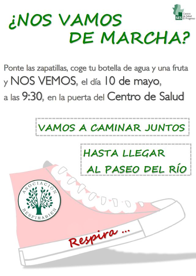 Ayer, jueves 10 de mayo de 2018, la asociación Respirabien convocó una marcha desde el C.S. "El Progreso" hasta el paseo del río Guadiana con el objetivo de concienciar a los enfermos respiratorios de la zona de la importancia del ejercicio físico para su salud respiratoria.